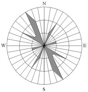 図5 地割れ方向と傾斜方向の角度頻度分布