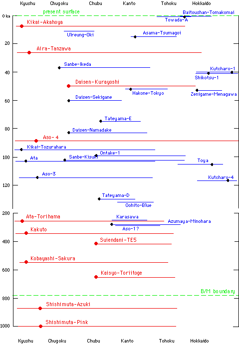 Tephra Time-Space Diagram -- Japan
