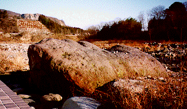 [備考]小野上村にはいって国道353号線に沿っていくと,小野上村温泉センターの看板が見つかるので,そちらに曲がります.温泉センターの道路をはさんで反対側はすぐ吾妻川の河原になっており,下りていくと整備された歩道のわきに,大きな赤岩がひとつだけ放置されているのがみつかります.前橋泥流堆積物が長い年月のあいだに吾妻川の流れに削られて,泥流堆積物に埋まっていた赤岩が地表にあらわれるようになったのでしょう.